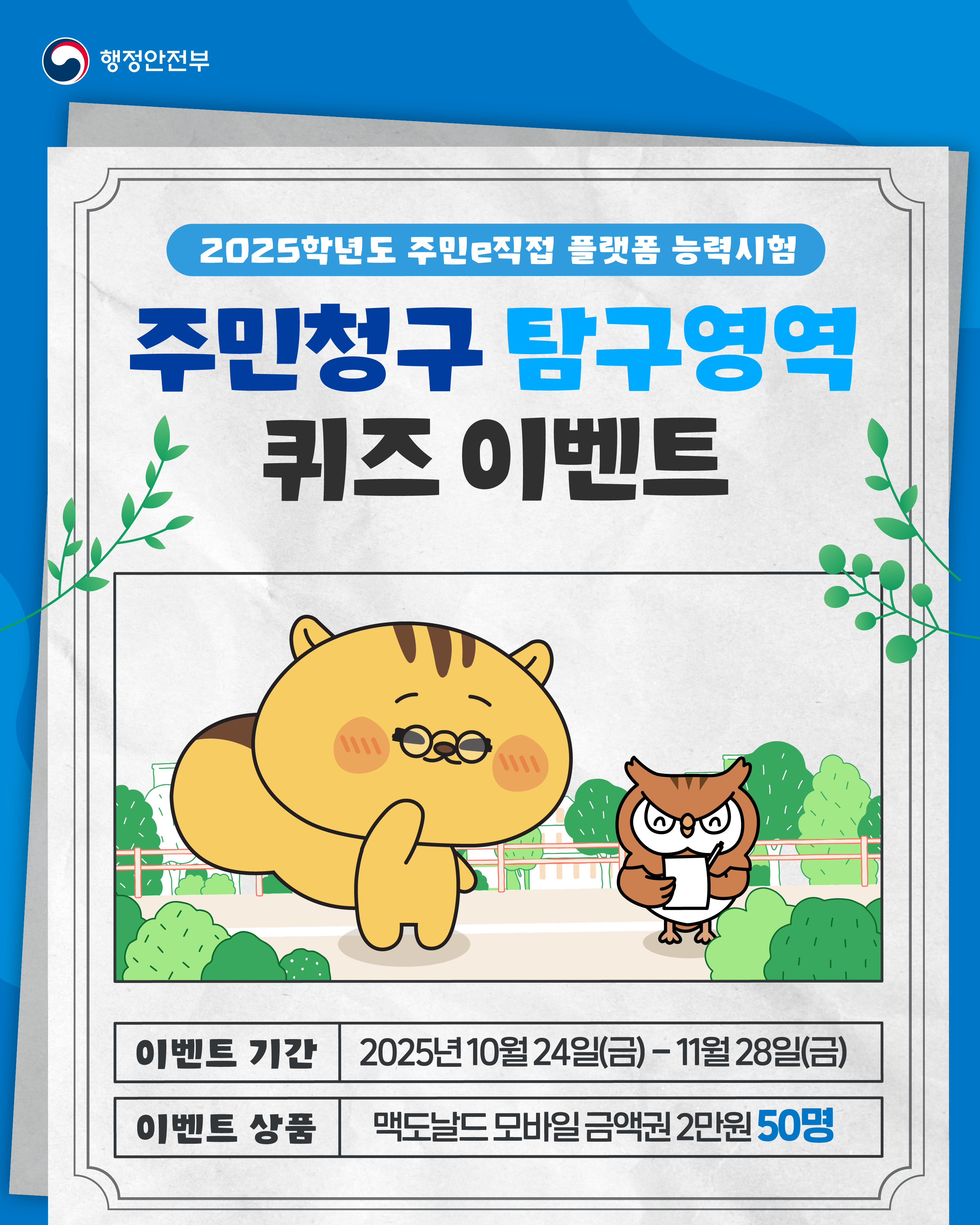 주민청구 탐구영역 퀴즈 이벤트에 참여해 보세요!