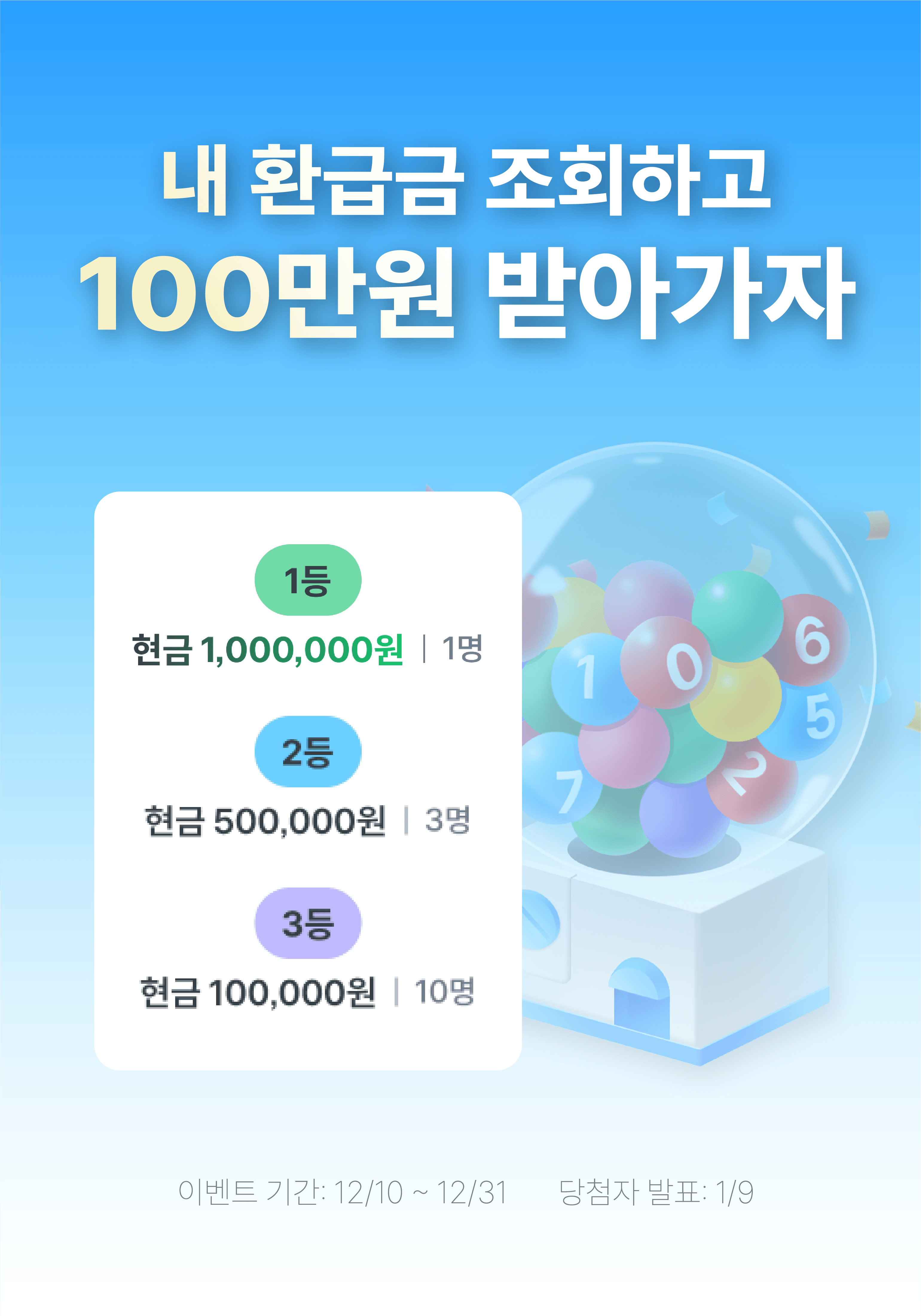 내 환급금 무료조회하면 현금 100만원 추첨기회! (12/31)